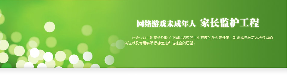 “网络游戏未成年人家长监护工程”是一项由苏州乐志游戏平台根据国家有关规定而发起的一个项目,由中华人民共和国文化部指导,旨在加强家长对未成年人参与网络游戏的监护,引导未成年人健康、绿色参与网络游戏,和谐家庭关系的社会性公益行动。它提供了一种切实可行的方法,一种家长实施监控的管道,使家长纠正部分未成年子女沉迷游戏的行为成为可能。该项社会公益行动充分反映了中国网络游戏行业高度的社会责任感,对未成年玩家合法权益的关注以及对用实际行动营造和谐社会的愿望。